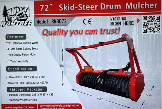 Raytree Forestry Drum Mulcher 1 Year Warranty Free Shipping